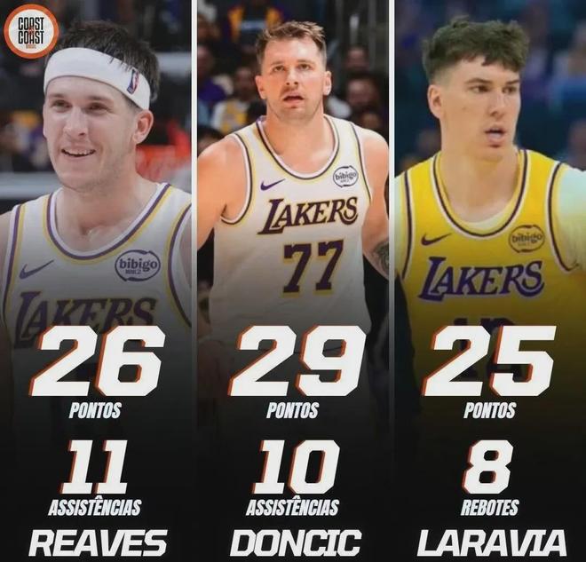 拉拉维亚在湖人三连胜期间,分别轰下27分8板2助1断、13分5板2助3断,以及25分8板3助4断,场均数据为21.7分7板2.3助2.7断,两项命中率78.1%和66.7%,真实命中率高达87.2%。